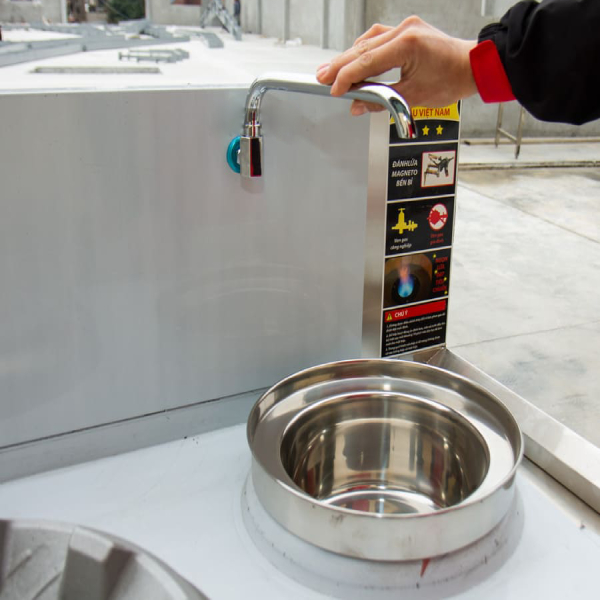 Bếp cũng được trang bị 1 vòi nước, đi kèm theo đó là 1 bầu nước inox cao cấp. Giúp cho quá trình nấu nướng dễ dàng hơn, nước có thể dùng để thêm vào món ăn hoặc xả trên bề mặt để hạ nhiệt cho bếp và vệ sinh sau khi nấu.