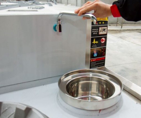 Bếp cũng được trang bị 1 vòi nước, đi kèm theo đó là 1 bầu nước inox cao cấp. Giúp cho quá trình nấu nướng dễ dàng hơn, nước có thể dùng để thêm vào món ăn hoặc xả trên bề mặt để hạ nhiệt cho bếp và vệ sinh sau khi nấu.