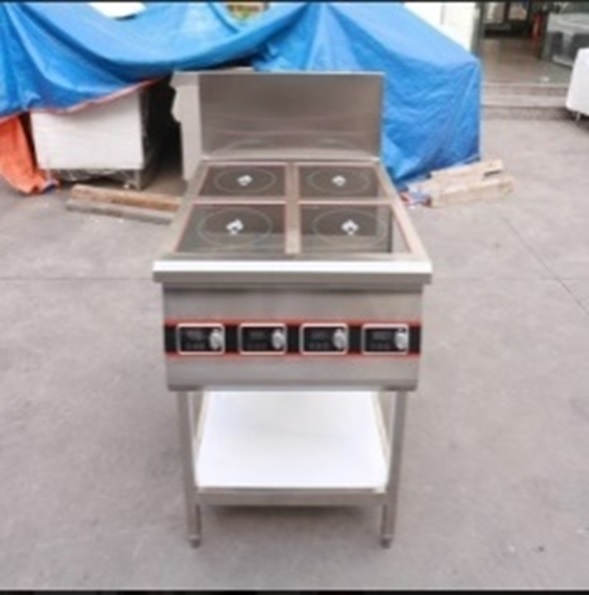 - Bếp Âu điện từ 4 họng có kích thước vừa phải 800x900x800/250mm. Đây là một kiểu bếp ga công nghiệp hiệu suất cao phù hợp sử dụng tại nhiều không gian nhà bếp nhà hàng, quán ăn…