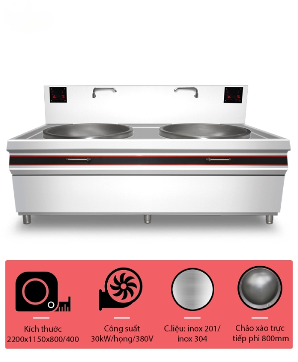 Bếp xào đôi trực tiếp phi 800 có kết cấu công nghiệp, hiện đại, tính thẩm mỹ cao, thiết kế thông minh chảo liền trên bề mặt bếp giúp người đầu bếp thuận lợi trong các thao tác chế biến các món xào, luộc,… đặc biệt bếp có công suất lớn, tốc độ đun nấu nhanh, do đó đáp ứng tốt nhu cầu nấu nướng lúc đông khách. Giúp công việc nấu ăn trở nên dễ dàng hơn. Bếp xào đôi trực tiếp phi 800 hiện nay được sử dụng trong các bếp nhà hàng, khách sạn, bếp công nghiệp,…