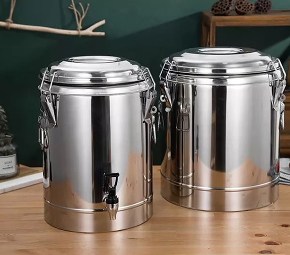 Thùng có nắp khóa với roan, móc gập chắc chắn giúp chống tràn, giữ nhiệt tốt, thuận tiện để vận chuyển thực phẩm, chất lỏng đi xa. Thùng inox dễ vệ sinh và bảo quản, tiện dụng và an toàn.