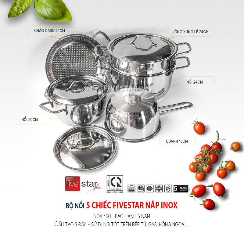 Bộ Nồi Inox 3 Đáy Fivestar:
