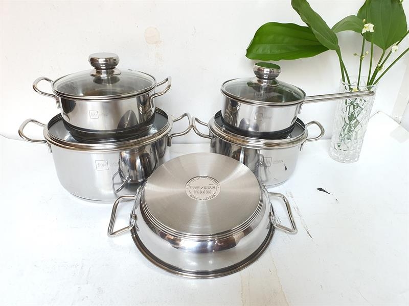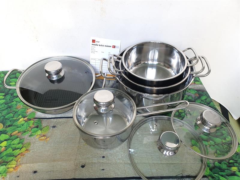 1 quánh 16cm, 1 nồi 18cm, 1 nồi 20cm, 1 nồi 24cm, 1 chảo chống dính 24cm