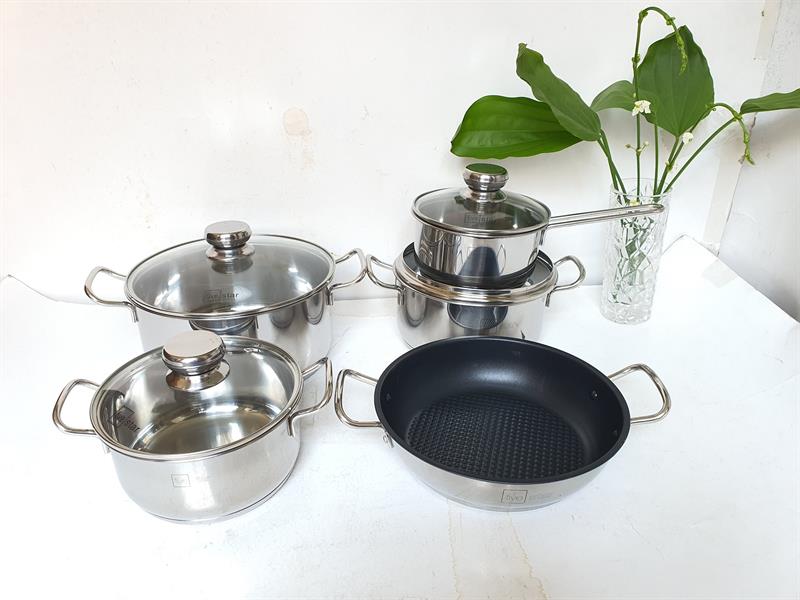 Bộ 5 Nồi inox Fivestar được thiết kế trang nhã theo phong cách châu Âu, vừa góp phần tạo ấn tượng cho nội thất phòng bếp nhà bạn vừa thuận lợi cho việc nấu ăn.