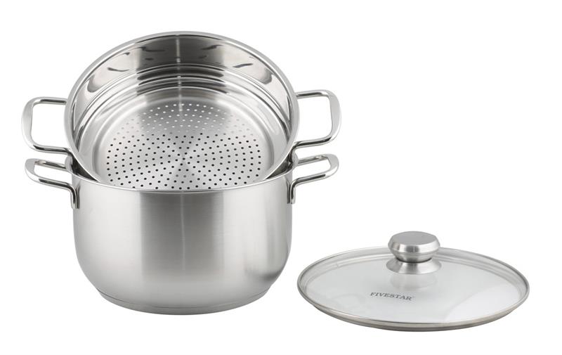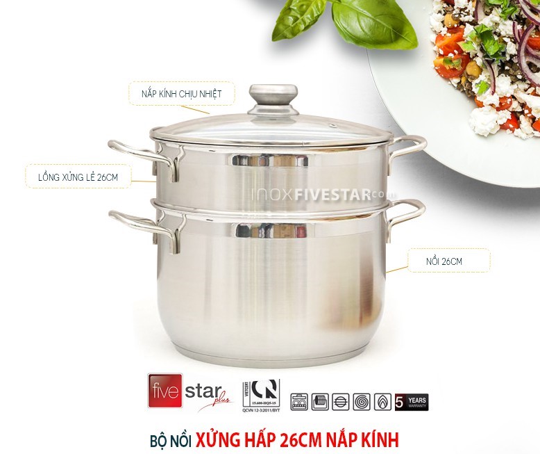 Bộ nồi xửng hấp 26cm nắp kính Fivestar được thiết kế trang nhã theo phong cách châu Âu, vừa góp phần tạo ấn tượng cho nội thất phòng bếp nhà bạn vừa thuận lợi cho việc nấu ăn.