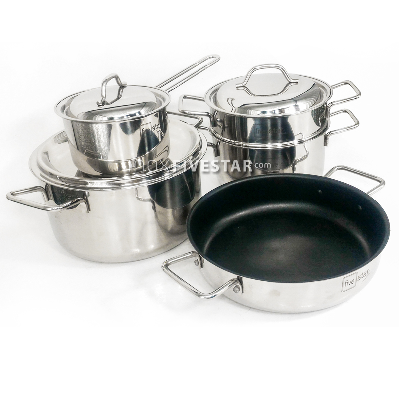 Bộ Nồi Xửng Hấp Quánh Chảo Chống Dính inox Fivestar được thiết kế trang nhã theo phong cách châu Âu, vừa góp phần tạo ấn tượng cho nội thất phòng bếp nhà bạn vừa thuận lợi cho việc nấu ăn.