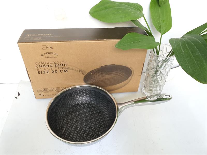 Chảo Sâu Blackcube Inox 3 Lớp Đúc Liền Đáy Từ Chống Dính Five Star được sản xuất từ inox 304 - nhôm - inox 430 bền đẹp, cứng chắc.