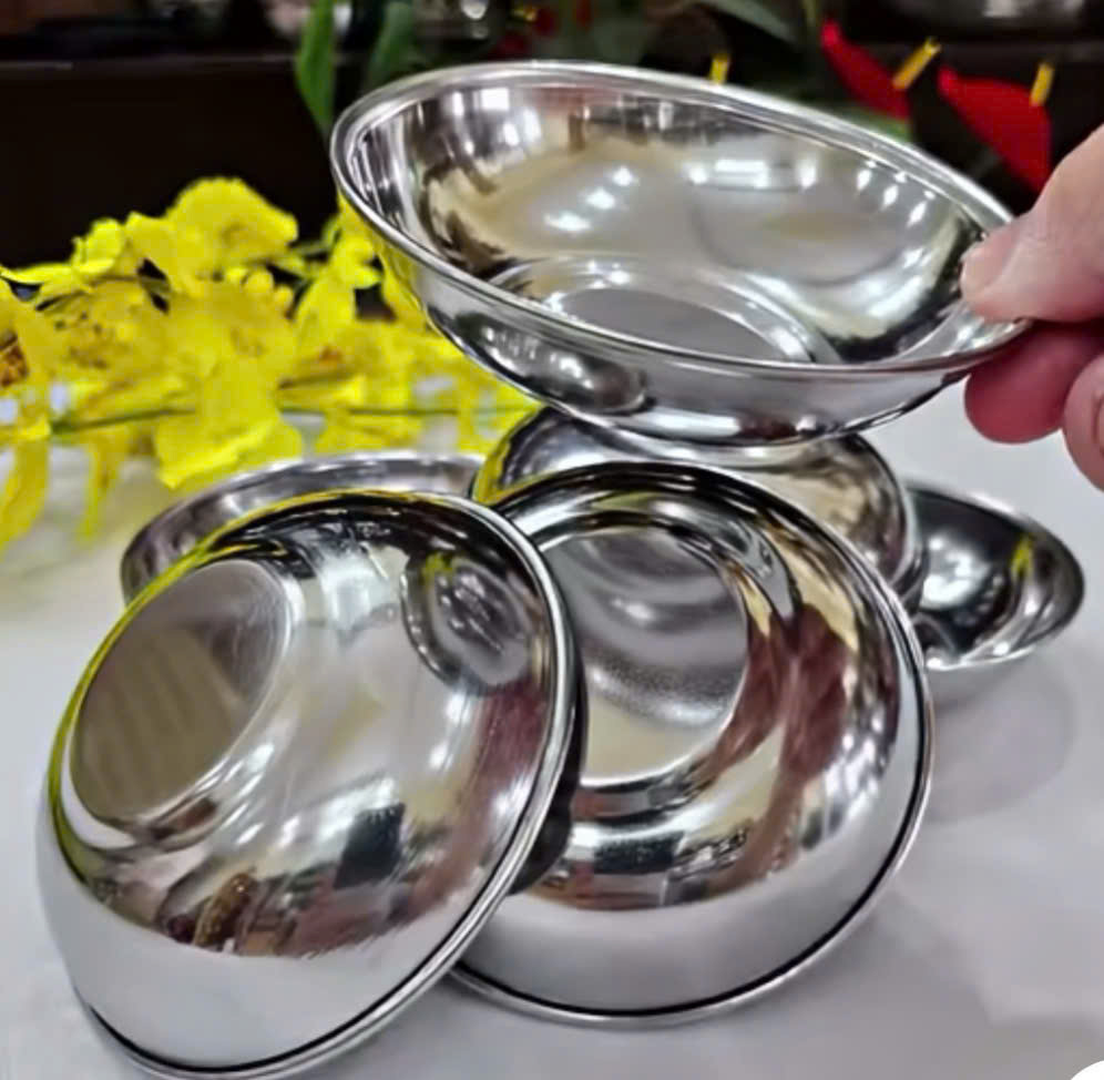 Chén inox được làm từ inox cao cấp, không bị oxi hóa, an toàn vệ sinh thực phẩm, an toàn.