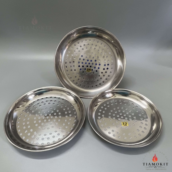 Đĩa đục lỗ inox tròn thường được dùng để trưng bày các loại hoa quả, đồ ăn thường được dùng trong gia đình, nhà hàng hoặc các khách sạn. Có thể dùng làm khay hấp đồ ăn, khay úp cốc chén, khay đựng hoa quả...