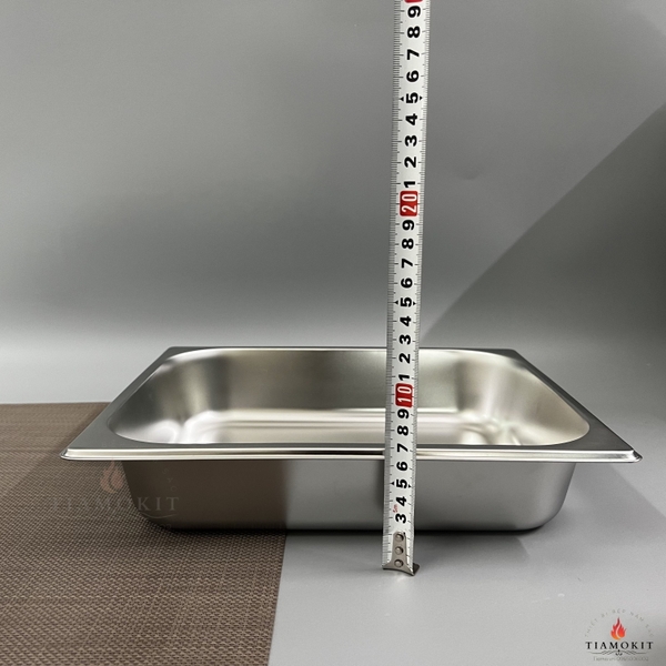 - Chất liệu của khay buffet 1/2 sâu 6.5cm : chất liệu inox 304 sáng bóng, không hoen gỉ, an toàn vệ sinh thực phẩm.
