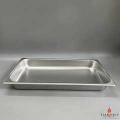 - Chất liệu của khay buffet 1/1 sâu 6.5cm : chất liệu inox 304 sáng bóng, không hoen gỉ, an toàn vệ sinh thực phẩm.
