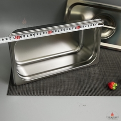 - Chất liệu của khay buffet 1/3 sâu 10cm : chất liệu inox 304 sáng bóng, không hoen gỉ, an toàn vệ sinh thực phẩm.