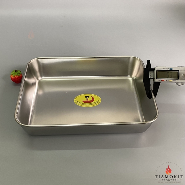 Khay chữ nhật 25x20x5.5 cm được làm bằng chất liệu inox 201, dùng để đựng nướng bánh, đựng thực phẩm....