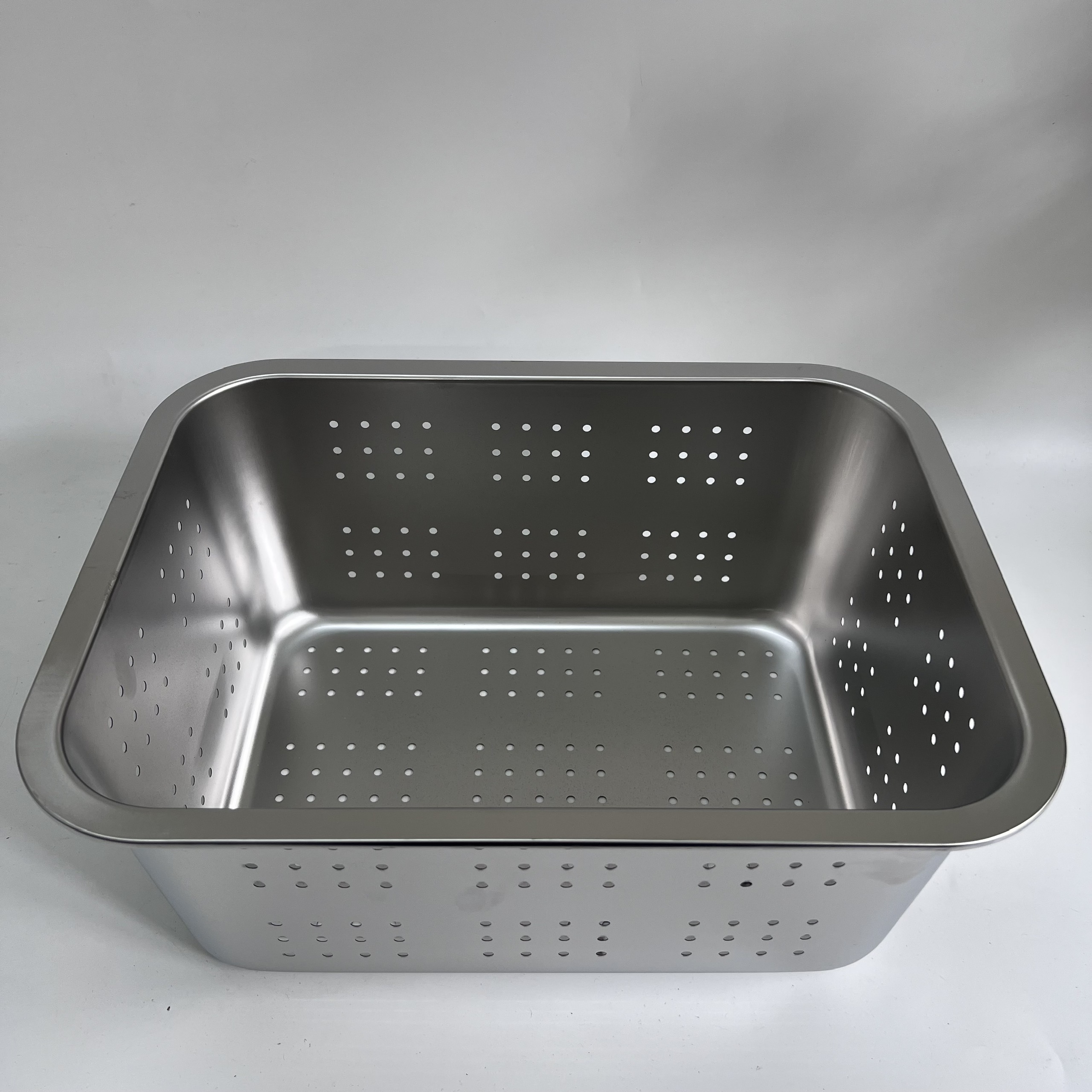 • Khay lỗ inox được sử dụng như rổ inox vuông sâu lòng, khay chồng được lên nhau nên tiết kiệm diện tích khi không sử dụng.