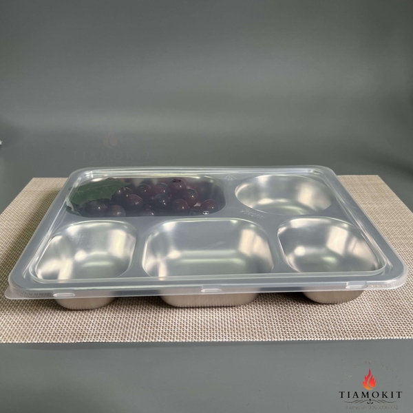 - Khay có nắp đậy bằng nhựa PP cao cấp ATVS thực phẩm, nắp khay kín vừa vặn giúp giữ ấm thức ăn, tránh bụi bẩn côn trùng xâm nhập.