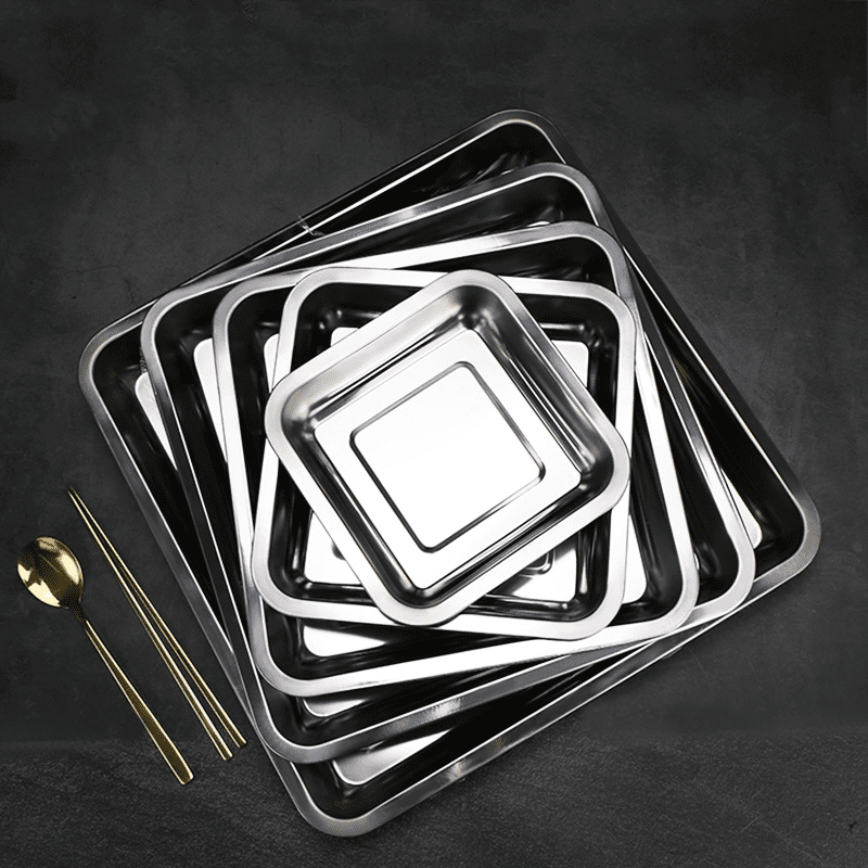 Khay nướng bánh inox được làm bằng chất liệu inox 304, dùng để đựng thực phẩm, nướng bánh....