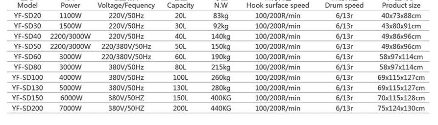 | YF-SD 40 | 2200/3000w | 220V/50HZ | 40L | 14kg | 100/200R/Min | 6/13r | 49x86x96cm |