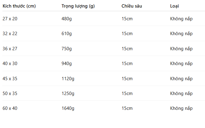 Với độ sâu lên đến 15cm, khay thích hợp cho việc hứng nước tiểu, chất thải hoặc sử dụng chung với lớp lót hút ẩm mà không sợ tràn. Chất liệu inox 304 dày 0.8mm, chịu lực tốt.