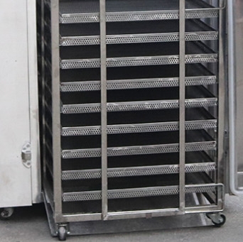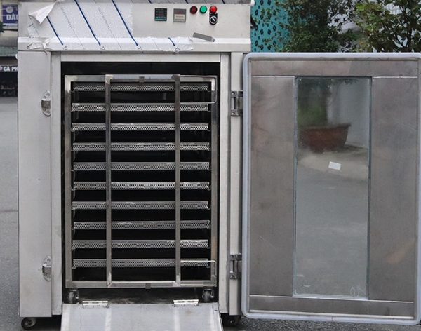 Tủ sấy nông sản tĩnh có 10 khay sấy tất cả được đặt trên giá có bánh xe di chuyển dời chứ không gắn chặt vào thân máy như các thiết kế cũ. Sự cải tiến này giúp bạn dễ dàng sắp xếp nguyên liệu sấy nhanh chóng ở bên ngoài rồi đưa vào sấy.